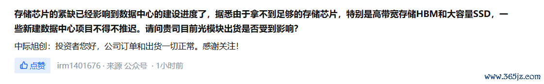 中际旭创:公司订单和出货一切正常中际旭创:公司订单和出货一切正常