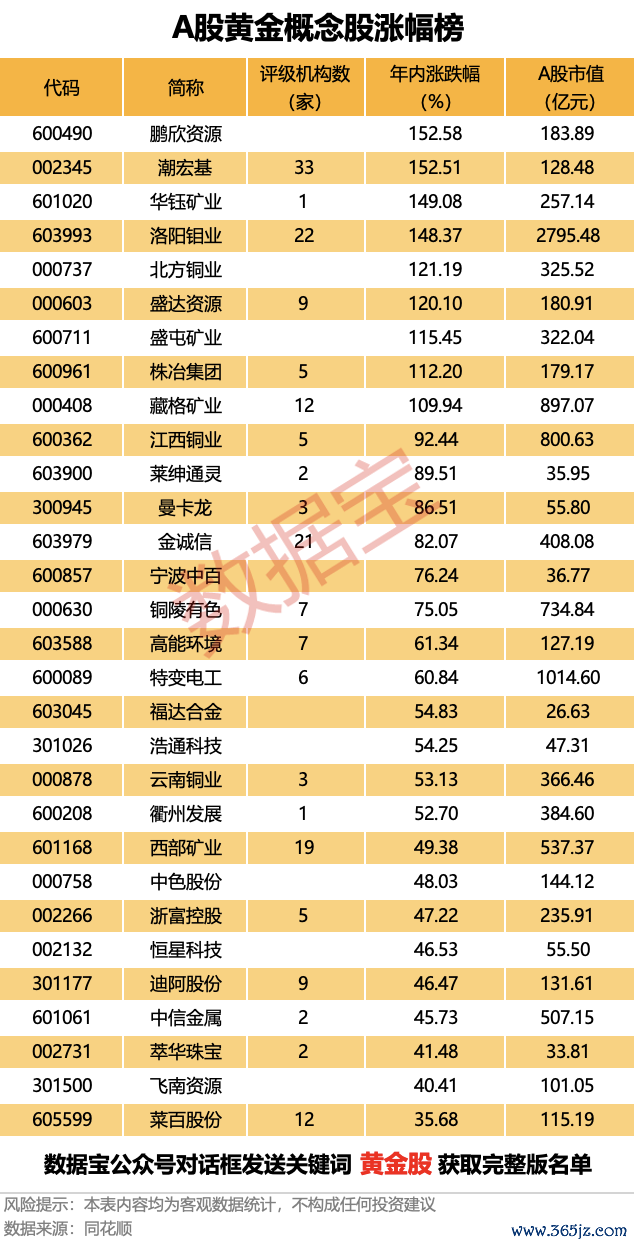 A股黄金概念股涨幅榜出炉A股黄金概念股涨幅榜出炉