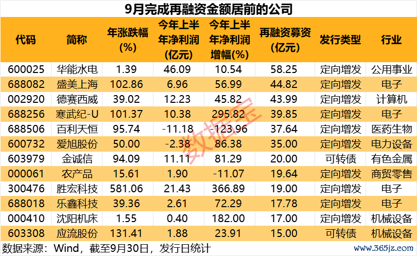 9月份A股再融资完成规模环比增近30% 6家公司募资超35亿元9月份A股再融资完成规模环比增近30% 6家公司募资超35亿元