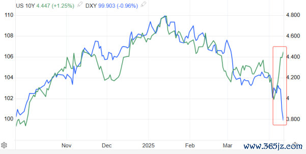 ▲美元指数和美债收益率的走势叠加图-ATFX